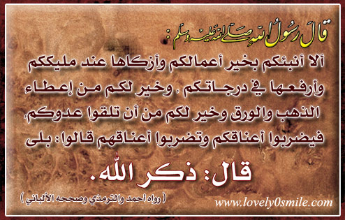 قال الله تعالى (والذاكرين الله كثيرا والذاكرات اعد الله لهم مغفرة واجرا عظيما) الاحزاب 35